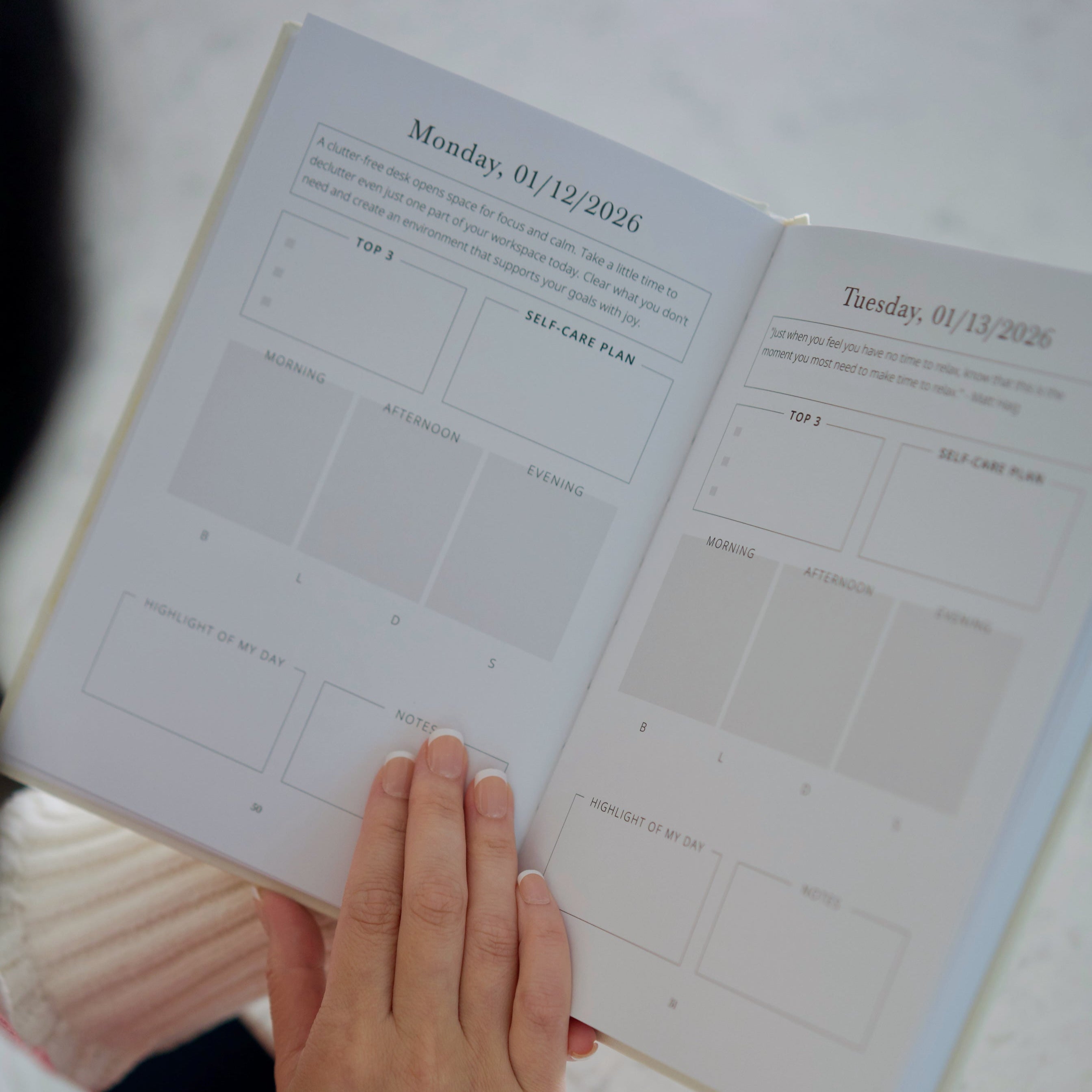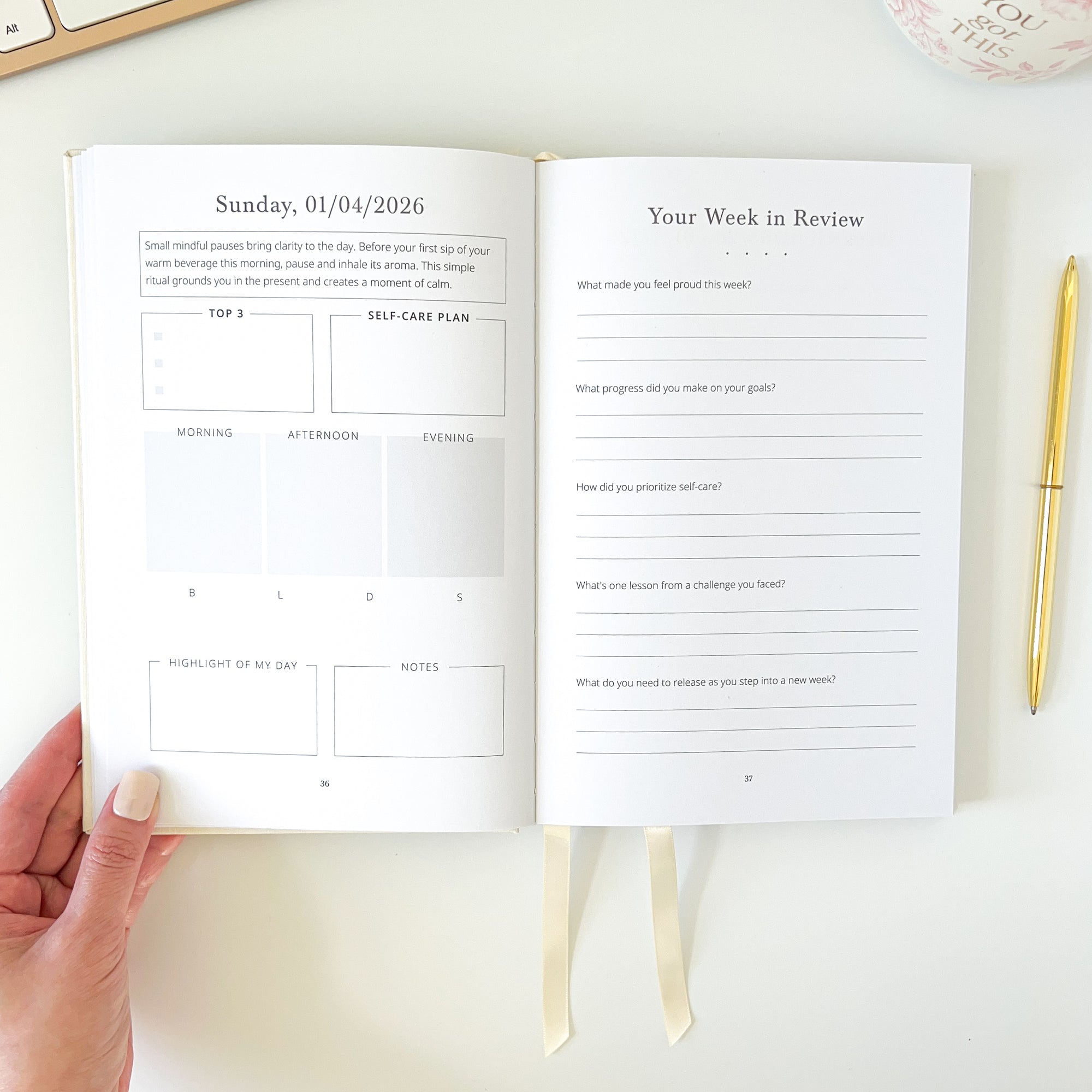 - Weekly and daily planning spreads to help you prioritize your time and nourish yourself every day