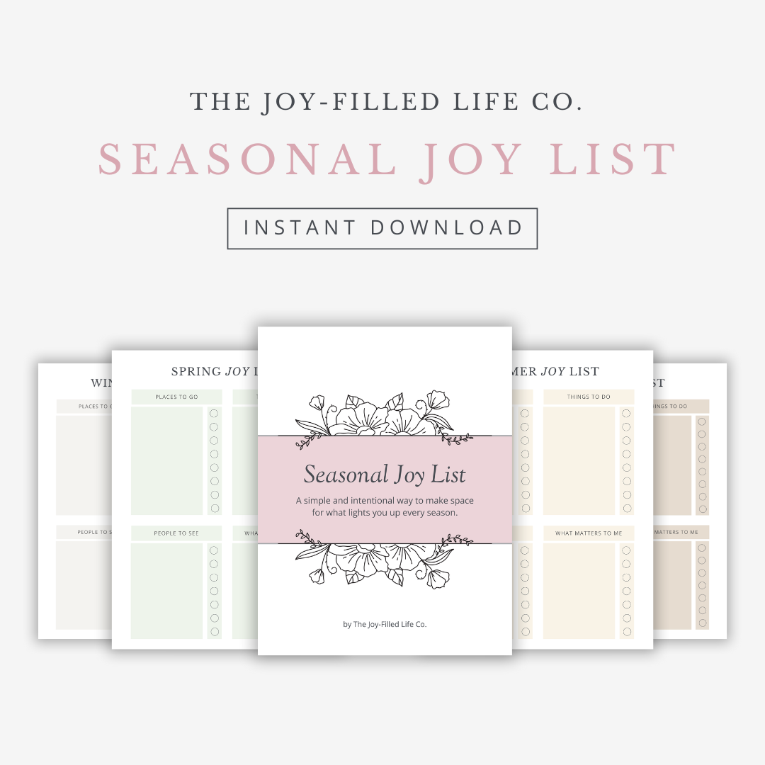 The Seasonal Joy List is a four‑page, intentionally designed tool that helps you slow down, notice what matters, and make room for the unique joys of each season. It is undated so you can use it year after year.